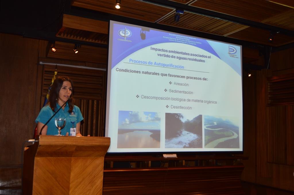 La primera ponencia del programa: «El impacto del vertido de efluentes industriales en cuerpos de agua», fue presentada por la experta ambiental Elisa Araujo, en la cual se alertó sobre la alteración de equilibrio de los ecosistemas y la disminución de las reservas de agua dulce. Por otra parte, recalcó la necesidad de revisar el modelo actual de gestión de aguas residuales, considerando el Decreto N° 883, vigente, sobre «Normas para la clasificación y el control de la calidad de los cuerpos de agua y vertidos o efluentes líquidos»